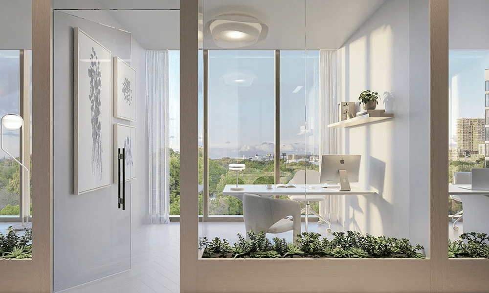 The concept blends art, identity, and lifestyle, with fully finished and furnished residences and a proposal designed for both living and investment. The inventory includes studios up to 3 bedrooms, with plans that (according to broker reports) range approximately from 396 to 1,171 sq ft. A key differentiator is the flexibility for short-term rentals (ideal for investors) and the option of deeded office suites in select residences, allowing for a separation of home and work life with added value uncommon in the area.